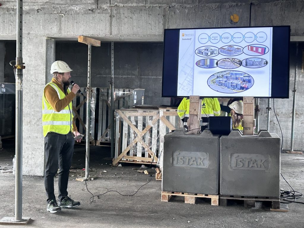 ÍSTAK kynnti verkefnið, steypingu eininganna og hönnun fyrir viðstöddum. Að kynningum loknum var boðið upp á göngutúr um svæðið.